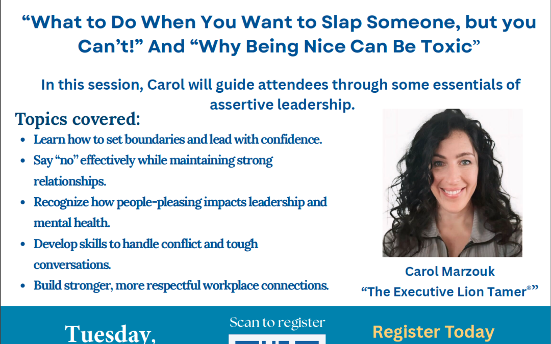 In this session, Carol will guide attendees through some essentials of assertive leadership.